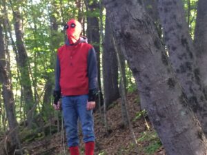 The final design for the MK.1 uses a C02 bike pump instead of a solenoid valve. This is a design many have used before, but I mounted the pump to the other side of my arm. This was so that it wouldn’t be too bulky, and the weight would be distributed more evenly. I used a roofing harness and some nylon webbing to connect the webshooters to my body. This made it easier to swing because I wouldn’t be able to hold onto the kevlar rope.